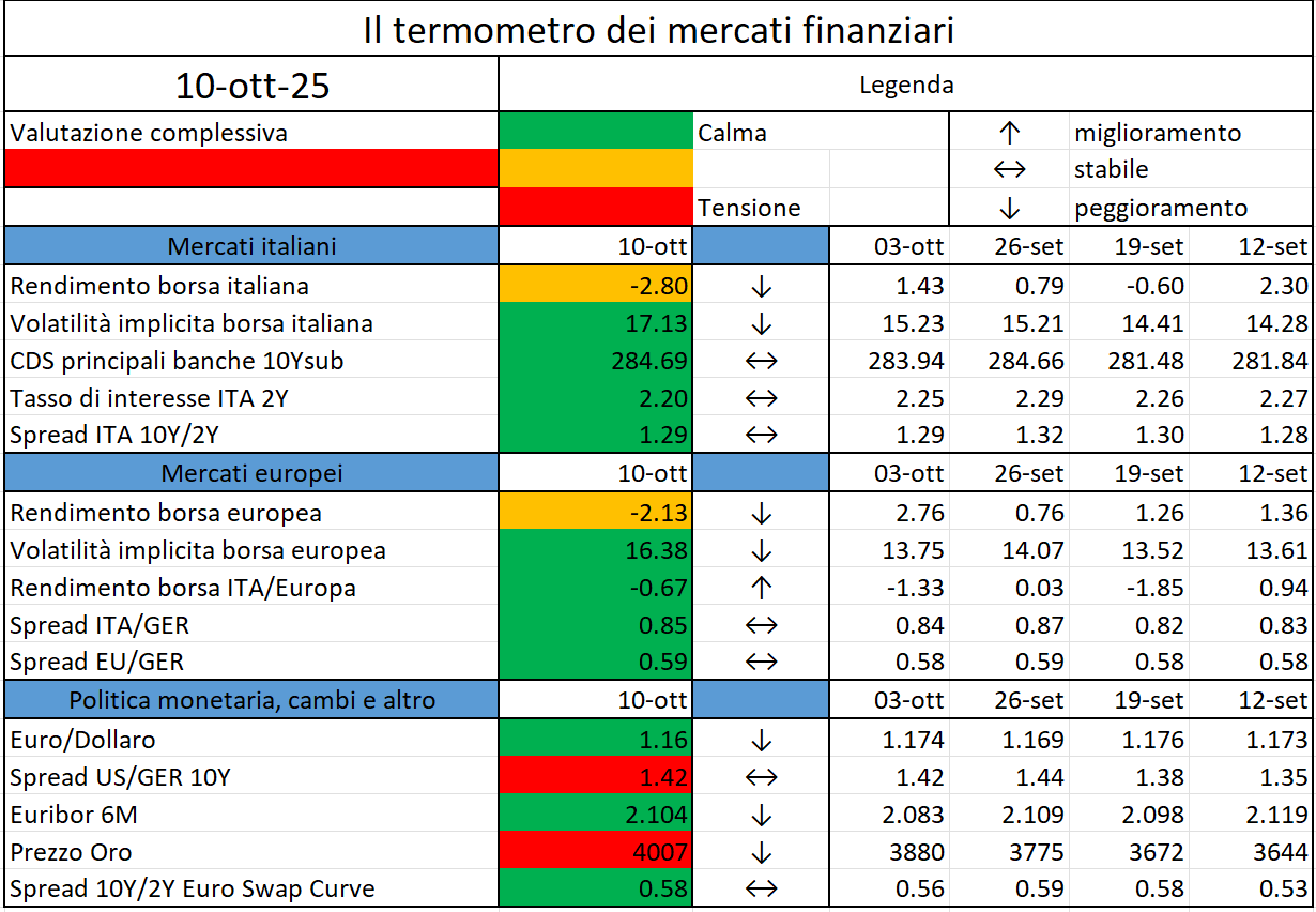 Il termometro dei mercati finanziari (10 Ottobre 2025)