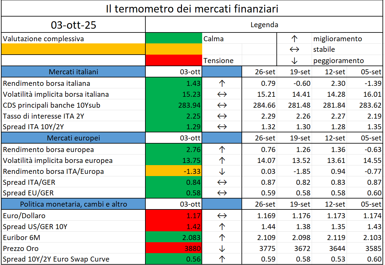 Il termometro dei mercati finanziari (3 Ottobre 2025)