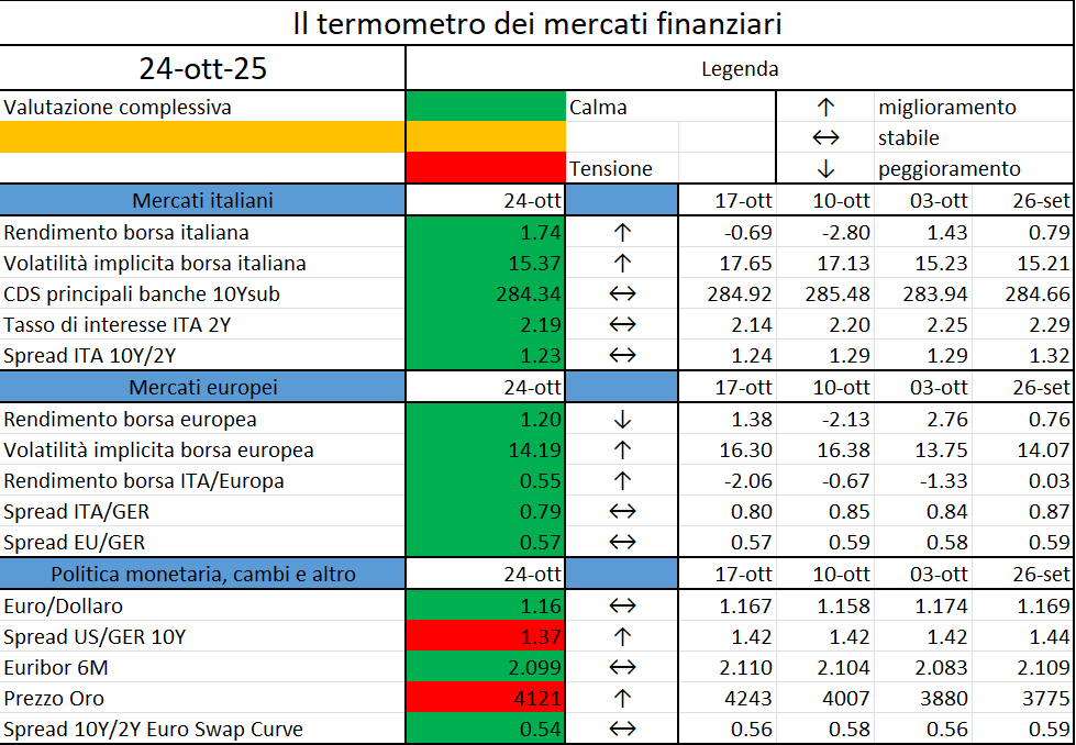 Il termometro dei mercati finanziari (24 Ottobre 2025)