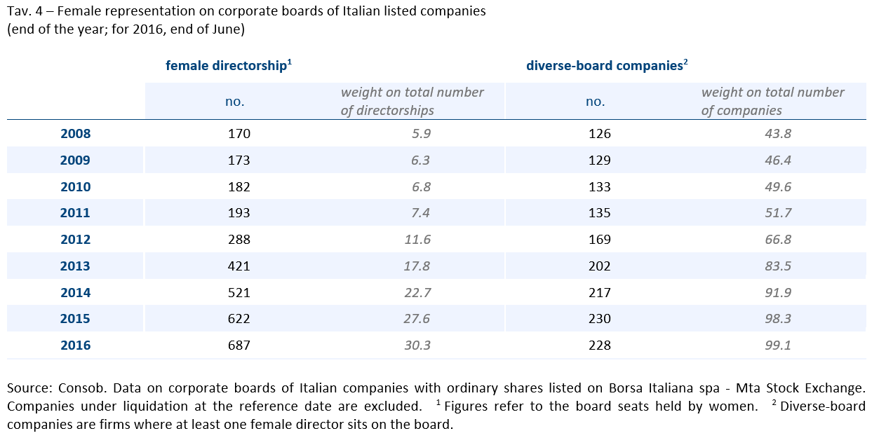 La legge 120/2011 in materia di quote di genere sta gradualmente modificando il grado di board diversity nelle società quotate italiane. A fine giugno 2016, infatti, la presenza femminile ha oltrepassato la soglia del 30% del totale degli incarichi di amministratore…